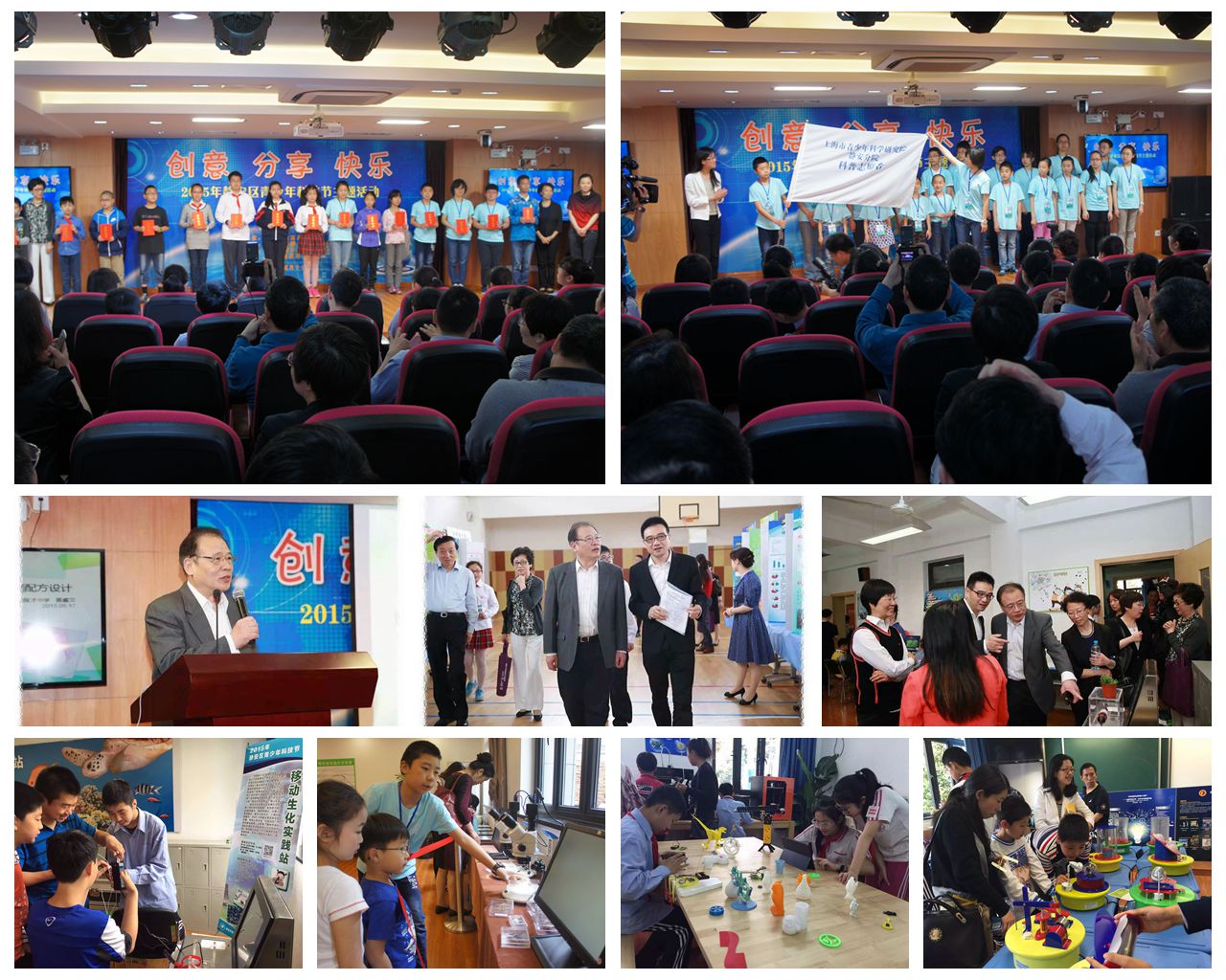 5月17日,由静安区教育局主办,区科委、区科协协办,静安区青少年活动中心承办,以“创意、分享、快乐”为主题,2015年静安区青少年科技节活动,在时代中学盛大开幕!上海科协副主席褚君浩院士、上海市教委体卫艺科处丛海鹰副处长、谢俊老师、上海市科技艺术教育中心卢晓明主任、王艳副主任、上海市科普教育促进中心凤慧娟副主任、上海市自然博物馆管委会顾洁燕副主任、静安区区政府夏以群副区长、静安区区科委林晓珏主任、静安区教育局陈宇卿局长,以及静安区各中小学校校长和上海市德育实训基地的老师们,来到“科技之星”、少科院小研究员、小小爱迪生、小小创客们之中,共享一年一度的静安区青少年科技盛会。