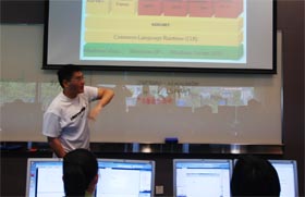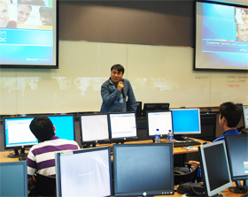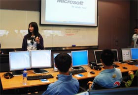 在微软(中国)上海科技园区的实践活动非常丰富。青少年科学研究的学员们听取了Windows Phone 7资深技术主管Jimmy Zhu关于Phone 7 开发平台SilverLight的介绍与入门学习的讲座,欣赏了工程师推荐的绚丽多姿的SilverLight演示程序,认识、了解了Phone7的开发环境,增长了知识;听取了公司CSS LAB部门经理毛峰关于微软公司CSS的介绍,了解了微软的企业文化;参观了微软公司舒适而现代化的办公环境、庞大的服务器中心,开阔了眼界;在微软实习生江南燕、宋企皋的指导下,进行了SilverLight 软件开发的实践体验活动,增强了学习的信心与动手的能力。在企业导师的指导下,学员们完成了首个SilverLight程序的设计与制作体验,并进行了交流、颁奖活动。活动在一片欢声笑语中进行,受到了同学们的欢迎。