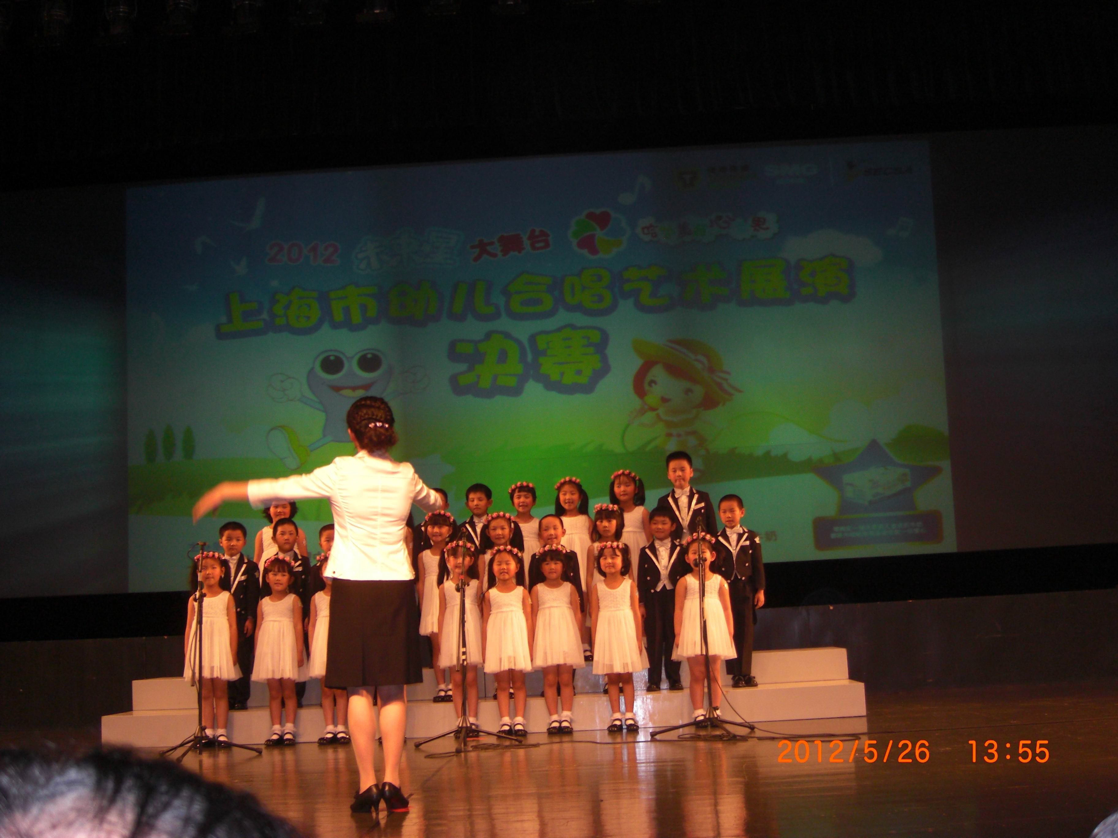 5月26日,我区6所幼儿园在黄浦区青少年中心举行的“上海市2012哈哈美丽心世界‘乐响心希望’大型儿童艺术展演暨慈善活动合唱决赛”中,获得了一金,一银,四铜的好成绩。其中秋月枫幼儿园获一等奖;海贝尔幼儿园获二等奖;红樱桃幼儿园、恒力锦沧幼儿园、华东师范大学附属幼儿园、大渡河二幼获三等奖。