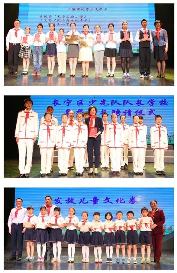 5月27日下午,长宁区少年宫人声鼎沸,热闹非凡,少先队员们迎来了自己的节日:“创?爱”——2015年欢庆“六一”主题活动暨上海市儿童基金会长宁分会成立仪式。