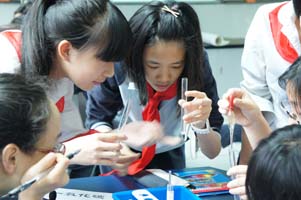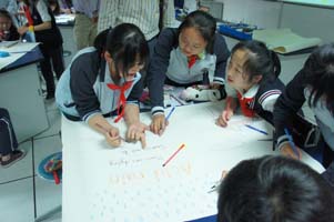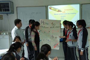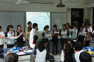 上海市科技艺术教育中心的王建华老师向上海市延安初级中学、上海市第三女子初级中学、上海市娄山中学以及冠莹、蒋骏莹老师颁发了中英气候课堂上海地区加盟学校2011年度教育项目示范奖证书。