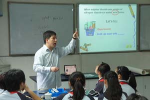 交流会首先参加了市第三女子初级中学“酸雨”双语教学观摩活动,英国总领事馆文化教育处教育官员余国平老师进行点评;然后上海市延安初级中学的《结合学校拓展课实施“中英气候课堂项目”》、上海市第三女子初级中学的《学校利用阅读领航平台实施“中英气候课堂项目”》和上海市娄山中学的《结合学?;繁;疃问凳爸杏⑵蚩翁孟钅俊薄房沽斯ぷ鹘涣髁耍直鸾樯芰恕爸杏⑵蚩翁孟钅俊钡淖龇ê途椤?span lang="EN-US">