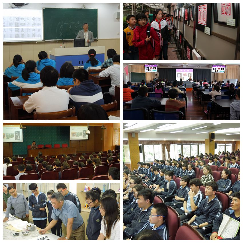 自4月21日至6月5日,“赵珊珊书法工作室”的张浩老师分别在静安区的陈鹤琴小学、市西中学、育才中学、育才初中行了题为“篆刻——方寸之间的艺术”的艺术巡回讲座,讲座通过以“社会主义核心价值观”为载体,以古老的篆刻艺术为形式,把弘扬民族文化与社会正能量宣传有机地结合在一起,获得了较好的社会效应。