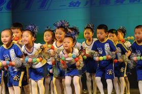 谁说上海的幼儿体能不行?145家幼儿园告诉大家:三分钟24名小朋友组成的团队韵律操展示了“我是悦动小达人”。上海幼儿韵律操大赛,使所有的成人看到了孩子们那灿烂的笑容,欢喜的神态,健康的身子,体能的潜力,看到了孩子们那刚与柔结合的艺术表现力。“天天运动,健康生活!——我行!”。
