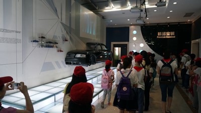 队员们在少年宫少年厅举行简短的出发仪式后踏上了寻访之路。首先走进的是世界500强企业——宝山钢铁总厂。在产品陈列馆,各式各样的产品实物,让队员们发现,钢铁和大家平时的生活关系十分密切,易拉罐、硬币,车子,锅具等许许多多日常用品都需要钢铁。