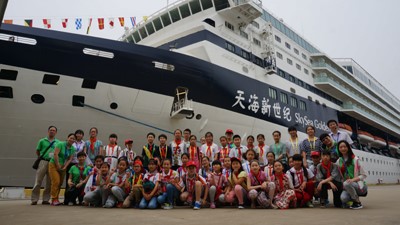 接着,队员们来到上海吴淞口国际邮轮港和邮轮来了次亲密接触。队员们通过观看邮轮港宣传片了解了邮轮港开工建设、成功试靠、正式开港运营等一件件振奋人心的事件,更让大家兴奋的是在体验了出境流程之后,看到了近在咫尺的邮轮?!疤懒?!”天海新世纪号、歌诗达赛琳娜邮轮让小伙伴发出阵阵惊叹!如果说宝钢是70年代到现在的名片,那么邮轮港已经成为宝山新的名片,已经成为宝山新的亮点。越来越多的市民可以通过邮轮去世界各地旅游,也有越来越多的外宾来到中国了解中国的文化。为家门口的邮轮港点赞!