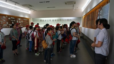 ?? ?寻访活动的最后一站是上海长江河口科技馆,它坐落于吴淞炮台湾湿地森林公园内,地处长江、黄浦江交汇点。位于地下一层的资源与环境厅内,看不到生硬的展墙,展项都巧妙地隐藏在仿真的河口湿地自然环境中,让队员们以全程体验的方式去感受河口地区的自然与生态环境,给大家留下深刻印象。在讲解员的引导下,队员们体验了虚拟河口航行,聆听了收录的世界各地河口的鸟鸣蛙叫声,四维动感影片《吴淞风云》更是带来身临其境的感觉……长江河口独特的人文历史风貌宛如穿越了时光隧道一般,栩栩如生地展现在大家眼前,从血雨腥风到蓬勃发展,《吴淞风云》带给大家极大的震撼。为家门口的河口科技馆点赞。