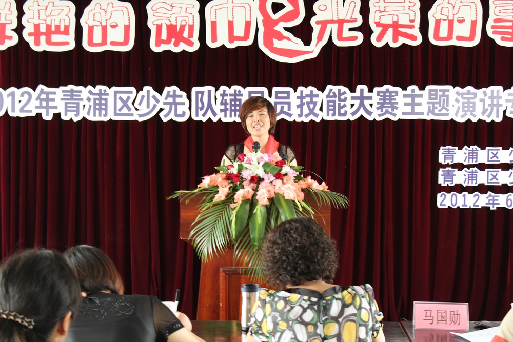 6月9日,2012年青浦区少先队辅导员“鲜艳的领巾光荣的事业”主题演讲专场在少年宫举行。比赛分为小学组和中学组,上下午两场,全区各中小学、九年一贯制学校的大队辅导员共37人参加了本次演讲比赛。