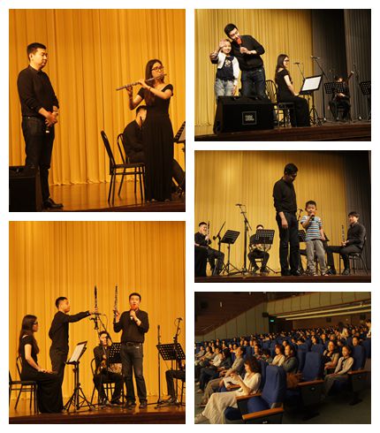 这场普及音乐会,顾名思义,就是给在场的小朋友普及知识而来的,主持人一一给小朋友们讲解了管乐器的名称、种类,乐手们还分别solo了一小段作品,有蓝精灵、天鹅湖,甚至还有lady?gaga?的poker?face,都是耳熟能详的作品,引起了同学们的共鸣,除此之外还有与小观众们的互动,气氛热烈。同样,乐手们这次演出的曲目也很亲民,《天空之城》、《千与千寻》等等,都是同学们喜闻乐见的作品,演出不断引来全场观众的阵阵掌声。