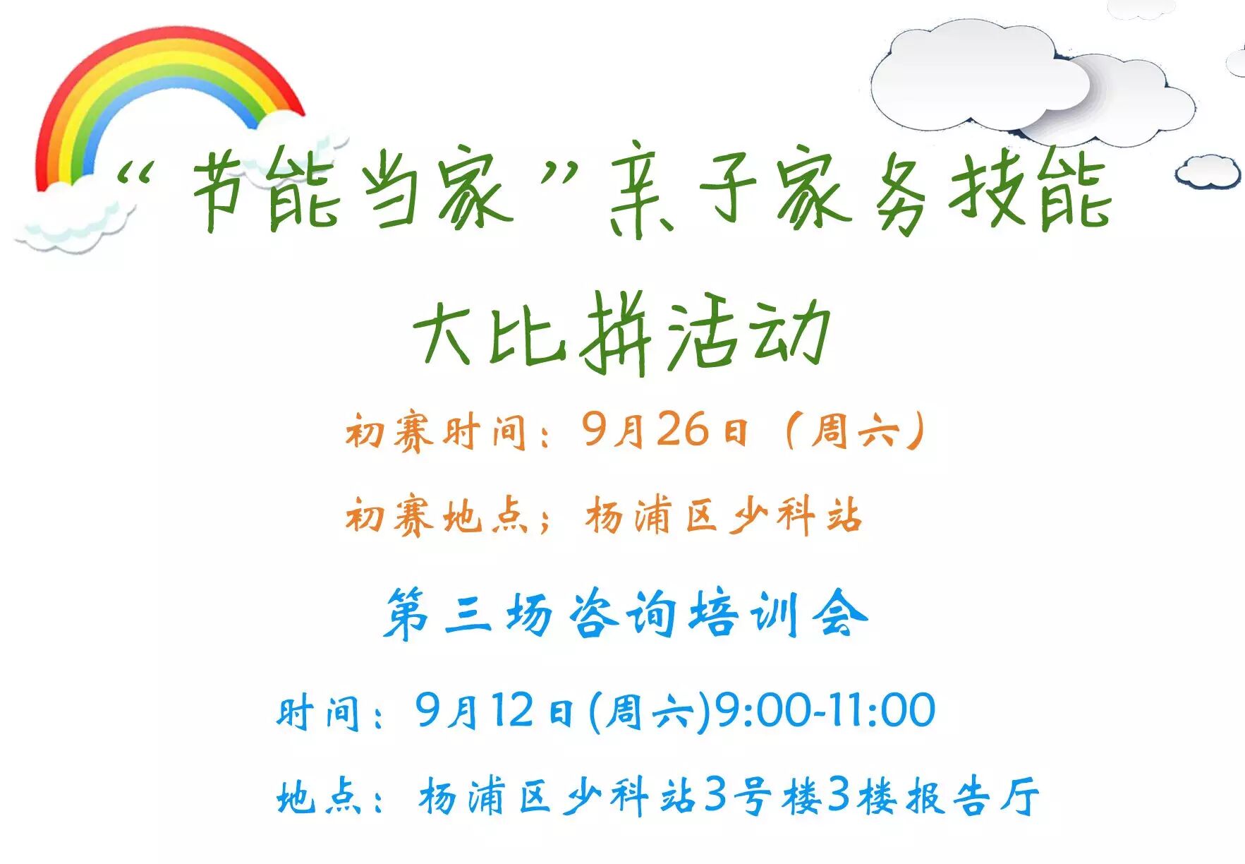 如果你也想参加9月26日的正式大比拼,即日起至9月6日,你可编辑"节能当家+学校+学生姓名+家长姓名+手机号+邮箱"留言给《沪东科教》,报名参加9月26日的“节能当家”亲子家务技能大比拼活动。