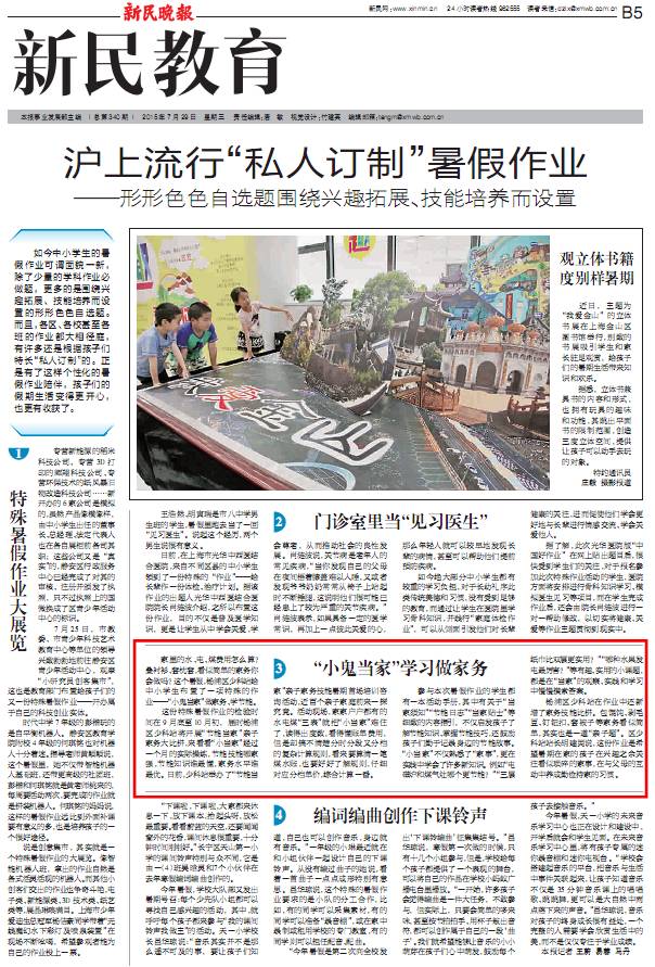 7月29日《新民晚报》B5新民教育版刊登原文如下: