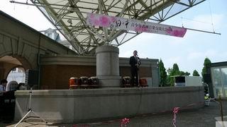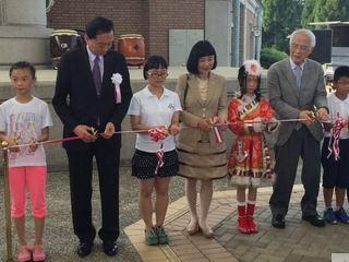 在简短而热烈的致辞之后,受邀嘉宾与日中学生代表一同上台剪彩。