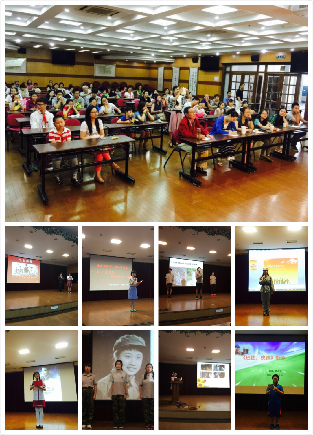 2015年暑假,静安区组织中小学生积极开展了“百年树人电影阳光行”——“中国梦、民族魂”影视教育系列活动。经过首轮选拨后,比赛中师生们结合观看推荐影视片的内容,努力发掘最感动、最震撼、最励志、最难忘的中华民族发展沿革中的社会、历史、文化、经济、科技、军事、生态环境等大事件,联系自身和实际,以微报告的形式,展示汲取民族优秀传统文化的滋养哺育、直抒“中国梦、民族魂”的豪情壮志。