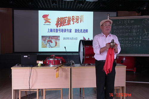 随着我区各校少先队辅导员队伍的不断年轻化,如何组建和训练学校少先队鼓号队始终困扰着这些年轻的辅导员。而2016年我们又将迎来“鼓号铿锵展风采,欢乐迎庆‘六一节’”——2016年奉贤区少先队鼓号大赛(3年一轮)。为此区青少年活动中心特邀了上海市少先队名师、市少先队鼓号培训专家袁伦兆老师分别于9月30日、10月14日、10月21日、10月28日(4天),在青少年活动中心多功能大厅进行“鼓号铿锵展风采”少先队鼓号系统培训指导。在各校领导的大力支持下,在学校少先队鼓号队指导老师的积极参与下,此次培训共有60所学校100多位老师参加。
