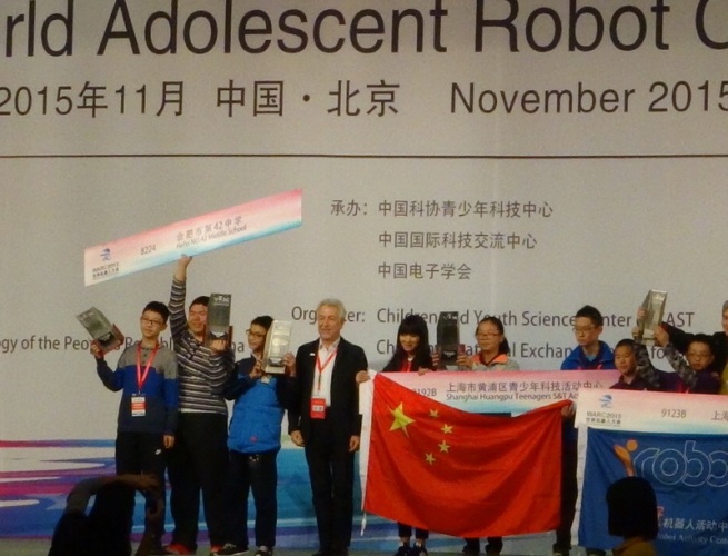 经过三天紧张激烈的比赛,科技活动中心代表队一举夺得包括全场总冠军在内的三项大奖,再次问鼎青少年VEX机器人项目。