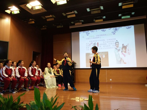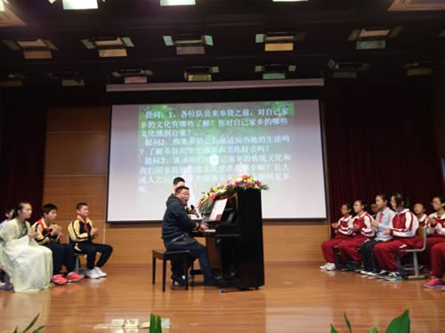 二、趣味性。活动课的取材要贴近队员们的生活,形式符合少儿特点,具有趣味性。本次活动课形式多样,内容丰富,设计新颖。课堂中包括有:各具特色的PPT展示、表演唱、小品、游戏、诗朗诵、乐器、茶艺、戏剧等节目形式,八仙过海、生动活泼,符合七年级少先队员的年龄和心理特点。值得一提的还有辅导员的弹唱《社员挑河泥》,它在不经意中发挥了两个作用:其一,通过弹唱具有奉贤家乡风情的《社员挑河泥》,表明辅导员也和大家一起加入了探寻家乡魅力文化的行列;其二,展示了辅导员的才艺,增强了辅导员在队员中的亲和感召力。