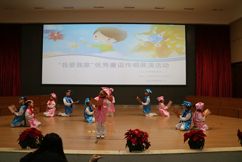 12月4日,奉贤区“我爱我家”优秀童谣传唱展演比赛在解放路小学报告厅如期举行。本次活动由区教育局主办、区青少年活动中心承办、解放路小学协办。区文明办未成年人科科长倪红、区教育局德育活动科科长张青、区教育局学前教育科科长赵银凤、区青少年活动中心党支部书记黄伟等领导莅临参加并担任评委。