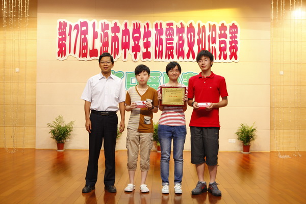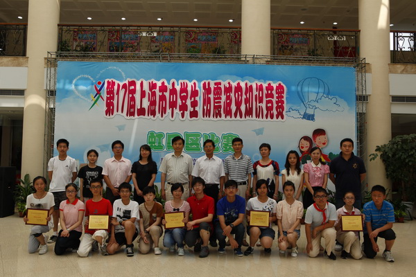 由虹口区地震办公室和虹口区教育局主办、虹口区青少年活动中心承办的“第17届上海市中学生防震减灾知识竞赛虹口区比赛”,于2012年7月2日在虹口区青少年活动中心热烈进行。上午进行初赛,虹口区共有北郊高级中学、澄衷高级中学、继光高级中学、钟山高级中学、五十二中学、新复兴初级中学、民办迅行中学和霍山学校八所学校报名参赛。根据规则,每校1队,每支参赛队由3名学生组成,其中至少有1名女生。初赛为笔试答题,围绕《中华人民共和国防震减灾法》、《防震减灾知识100问》等中的知识内容,结合自救互救基本技能以及近年来发生的国内外大地震等内容展开。根据笔试成绩排名,从8支代表队中角逐出6支队伍参加下午的决赛。