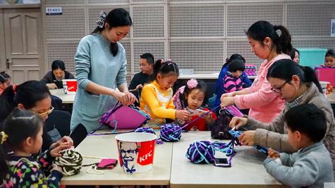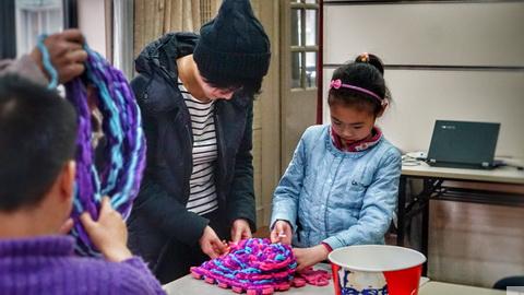 伴随着悠扬的歌声,少年宫绿叶楼多功能厅正进行着“巧手织围脖”的亲子活动课程。活动课程中,教师以泡沫垫板作为导入,让学生展开丰富的联想,最后切入主题,当教师示意将泡沫垫板作为织围脖的工具时,场下的小朋友们瞪着好奇的眼睛,满脸的不可思议状,异口同声的问道:“这能织出漂亮的围脖吗?”。当孩子们穿戴上今天的活动成果登上T台,来一场亲子“创意围脖秀”时,脸上已经乐开了花,孩子和家长们不亦乐乎,在T台上走了一遍又一遍,秀着自己的杰作,秀着满满的幸福。值得一提的是,此次的亲子活动中,很多爸爸们也参与其中,饶有兴致地与自己的孩子共同编织着围脖,丝毫没有倦怠之意。