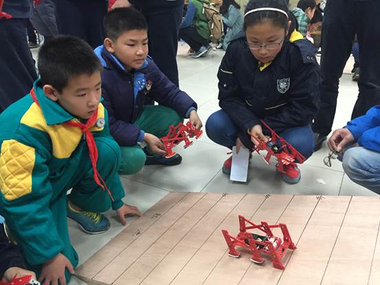 原来这是上海市静安区一师附小五(3)班李瑞祺同学的得意之作,这已经是他第二次参加“西南位育杯”了,“去年我参加的静态项目,今年是动态作品——《奔跑吧,蚂蚁》。”为什么要选择做一只蚂蚁呢?李瑞祺开心地介绍道:“看过影片《蚂蚁总动员》后,我被勤劳、勇敢、机智的蚂蚁所折服,蚂蚁可是我心中的小英雄!”
