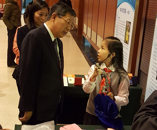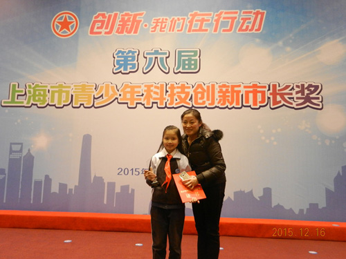 学生们的奇思妙想到发明作品再转化成实际的产品投入生产和使用,还需要很多路要走,但是通过模拟专利交易活动让学生体验创新之路就在自己的脚下。康宁科技实验小学的李妍彤同学已经连续参加了四次模拟专利交易活动,通过这个活动让她由一个文静的小女孩,成为了学校闻名的小创客,上个星期刚获得了第六届上海市市长奖,她向杨雄市长展示了自己参加模拟交易活动的四件作品,得到了杨雄市长的亲切鼓励。