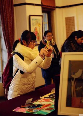 清晨的大雪、下午的冻寒没有止住爱好艺术的学生的脚步。上海学生美术馆引来了2016年的第一批观众。本次展览还增加了三支特别的学生志愿者团队:上海市学生艺术团书画工艺表演团的团员们担当起展览讲解员;华政附中的高一学生以此次展览服务为社会实践活动,和及大学生志愿者们一起管理着两个层面的展厅和展出的作品,热情为学生、老师和家长们做参观引导等。展览从1月23日~30日上午9:30—11:00、下午1:30—4:00(注:1月25日休馆),在上海市学生美术馆(长宁区少年宫红花楼2、3楼)展出。
