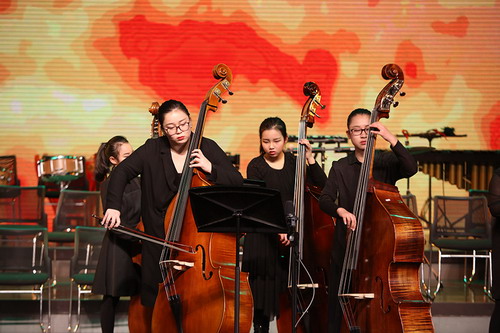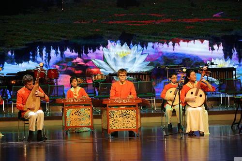 杨浦区少年宫民乐团梯队学生先以一曲欢快的《花好月圆》拉开了整场汇报演出的序幕。紧接着有从各个声部反映的合奏、重奏、齐奏、独奏等多种演奏形式丰富的节目,民乐合奏《舞曲》、二胡独奏曲《葡萄熟了》、阮乐合奏《火把节之夜》、打击乐重奏《击乐畅想》、双五重奏《天山之春》等,充分展示了弹拨乐、拉弦乐、吹管乐、打击乐等不同门类的民族器乐的特点和魅力。最后,民乐二团压轴登场,带来了今年参加全国第五届中小学生艺术展演活动的节目《激情的回忆》,汇报演出在一曲热闹欢腾的《庆典序曲》音乐声中结束,乐声久久回荡。现场爆发出雷鸣般的掌声,参与观摩的学生家长更是激动不已,掌声、欢呼声经久不息。观众席中,一群金发碧眼的外国观众分外惹人注意。他们来自于10个不同的国家,听闻少年宫民乐团声名遐迩,在解放军外国语学院领导的带领下,特意来观看演出。演出结束后,他们不停地赞叹中国民乐的神奇和优美。