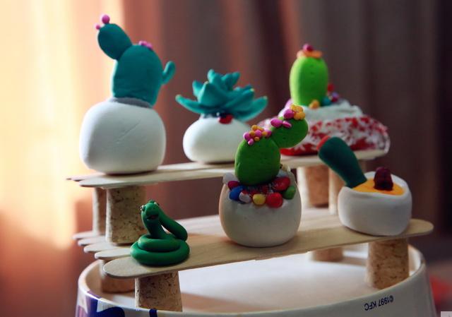 在制作的过程中,孩子们以夸张的造型、奇妙的构思以及富有灵气的表现方式,创造出了富有童真稚趣的作品。而在一旁的爸爸妈妈们也不甘示弱,纷纷在旁出谋划策,有的帮忙配色、有的帮忙点缀……,手工作品在家长和孩子的手中逐渐变得惟妙惟肖、栩栩如生……孩子们在彩泥制作的多肉植物前流连忘返,看到自己的作品时兴奋又自豪。家长们更是对独特的创作赞叹不已,看着家长和孩子脸上幸福而满意的笑容,上课的老师们感到无比的欣慰。