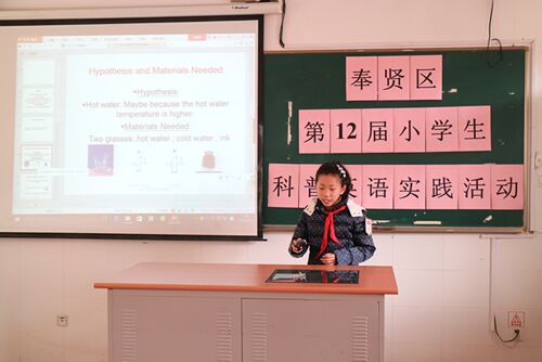 奉贤区第12届小学生科普英语实践活动于3月9日下午在奉贤区青少年活动中心举行。本次活动自2015年7月开始,全区20多所学校375名学生参加。层层选出的50名学生陈述了自己的科学调查,最后我们遴选出了南桥小学李一葛等21名选手将参加3月19日在上海市科技艺术教育中心的活动。