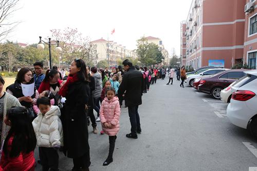 当天有合唱215位、舞蹈245位萌娃参加面试。早上8点,就有第一批家长前来等候,9点不到,青少年活动中心三号楼前就排起了长龙。考虑到孩子们小,至少有一至两位家长陪同,为了确保现场的有序和安全,中心作了充分预案。除了分时段限流,更设计了科学的路线,家长经过排队领号和孩子进入休息室,由老师分批将孩子带入候场教室,或准备视唱,或简单热身,再依次送入考场,由专家团队老师按照录取标准对每位考生进行测试,最后当场决定是否被预录取。