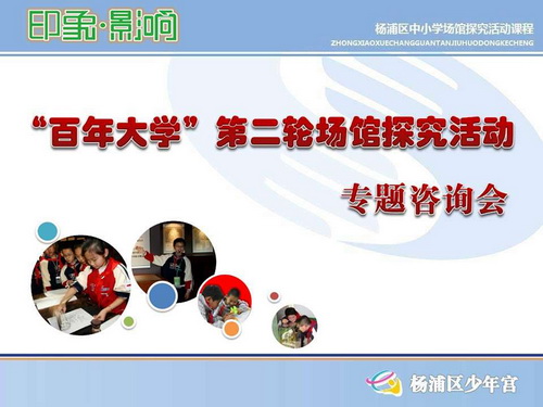 2016年3月18日下午,“印象?影响”杨浦区中小学生“百年大学”第二轮场馆探究活动项目研讨会,在杨浦区少年宫举行。杨浦区团委书记乔兴刚、第二军医大学、电力学院、海洋大学、体育学院等4所高校的团委书记出席了此次座谈会。