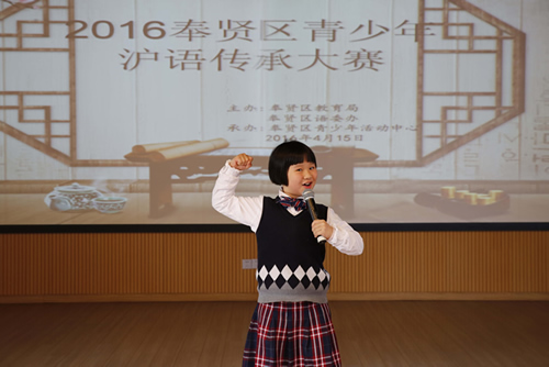 4月15日下午,由奉贤区教育局、奉贤区语委办主办,奉贤区青少年活动中心承办的“2016奉贤区青少年沪语传承大赛”在奉贤区青少年活动中心举行,全区共有三十多所学校的学生代表参加了本次比赛。参赛对象为具备沪语知识和表达能力的本市初中、高中(含中职校)、小学生。比赛内容为沪语影视片段配音和沪语演讲小故事。选手们纯真的方言让人倍感亲切自然。