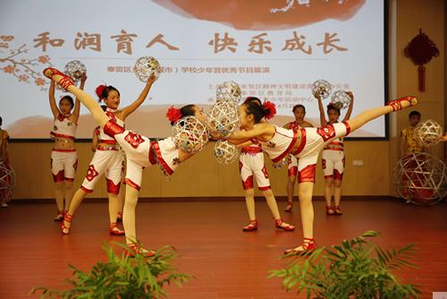 教院附小的武术《功夫小子》拉开了本次活动的序幕,同学们强有力的出拳,扫腿都满含激情,他们的热情澎湃瞬间点燃全场。随后出场的有新寺学校带来的民间艺术《手狮舞》、汇贤中学活力四射的街舞《21guns》、齐贤学校的《舞蹈瑜伽》、胡桥学校的滚灯舞蹈《欢天喜地》等多种形式的舞蹈。柘林学校情景剧《田山歌表演唱》以新颖的方式展现在大家面前,剧中人物个性鲜明的对话让人仿佛置身其中。而青溪中学如行云流水般的《琵琶语》舒缓动人,曲毕,余音袅袅飘荡在展厅。金水苑小学本次则带来了独特的少儿沪剧《过节了》。最后出场的尚同中学用舞蹈《最美的逆行》讲述消防战士灾后拯救幸存者的故事催人泪下。