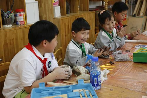 陶艺赛场,选手们两手陶泥又捏又搓,天马行空大胆想象,捏出胖乎乎的大象、俏皮的米老鼠、威风的布老虎、美丽的花园洋房……