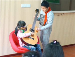 当天下午,4位“小先生”带着自己的“绝活儿”自告奋勇地走上了讲坛,分别用质朴的语言、气场十足的武术功夫、成功的多肉植物养殖经验和娴熟的吉他演奏技巧为学弟学妹们”教授“了一节别开生面的活动课,轻松的氛围、逗趣的表达、水到渠成的互动让整个课堂充满欢声笑语。这就是长二分校对于”快乐活动日社团化课程“中“多元师资”概念的摸索与尝试,让学生上讲坛争当”小先生“,能用自己的特长、经验和感悟“以身示教”,并与同伴们分享。这种让学生用自己的语言和方式“去程式化”的向同伴展示自己一技之长的方式,让在场的教师和同伴们都有耳目一新的体验。