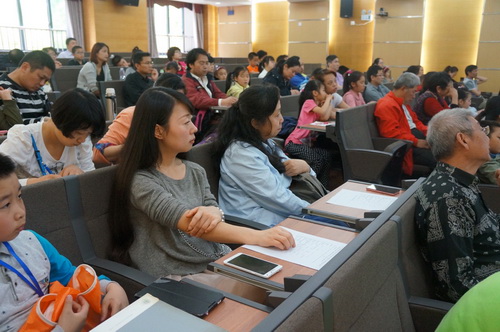 中国古诗词以其精炼的语言,丰富的想象,真挚的情愫传唱千年不衰,成为中国文化史上一道靓丽的风景线。如何鉴赏中国古典诗词?施老师引经据典以植树为喻,认为诗歌为果木,感情为根本,语言为枝叶,声韵格律为花朵,含义为果实,并结合李白、白居易等名家名作,巧妙分析古典诗词的语言特点及“起承转合”的结构特点。课后,施老师以对对联的方式与现场观众互动,将讲座推向高潮,家长与学生在欣赏、学习古典诗词的过程中,传承中华文明精髓。