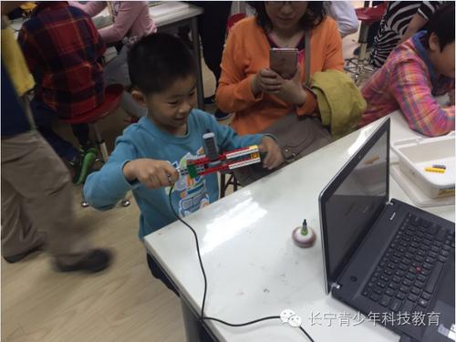 ??????? 你动脑来我动手,在一堆散颗粒零件中挑选正确零件,一块一块、一步一步建构起自己的陀螺发射器,每隔一段时间还不忘及时测试各部位是否运转顺利。一个个成功发射、高速旋转的陀螺在同学们手中诞生,一个个小小创客也在活动中孕育而生。