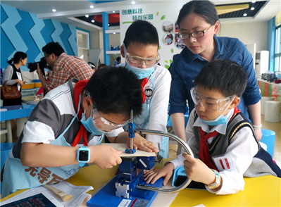 在启动仪式上,杨浦区教师进修学院小学教研室主任邹雪峰和杨浦少科站站长胡建民共同“按启”了“硅谷小学院”的启动“大门”,寓意着“硅谷小学院”正是开院啦。