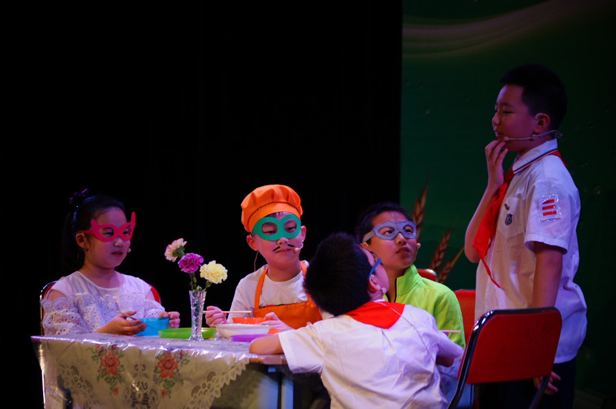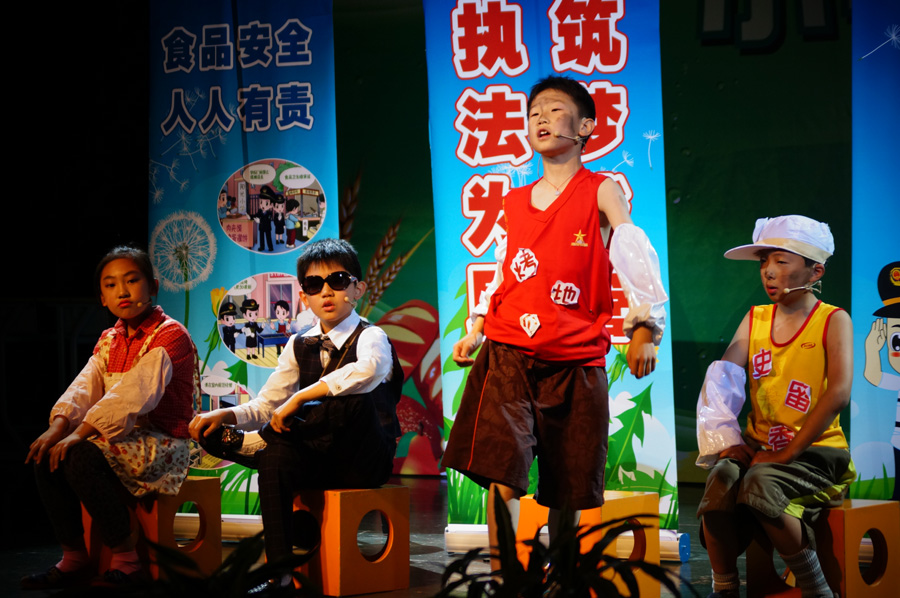 由来自闵行区七宝明强第二小学的校戏剧社,展示了“‘进口’食品”作品。以学生春游聚餐为背景,有位同学带了满满一包进口食品,见到其他同学有的带面包牛奶,有的带妈妈亲手制作的寿司、三明治,就“进口食品”还是“国产食品”甚至是自制食“高级”展开了激烈的争论。最后,大家得出结论,其实无论“进口食品”还是“国产食品”,只要是符合安全标准的食物,就能放心地让它们“进口”。