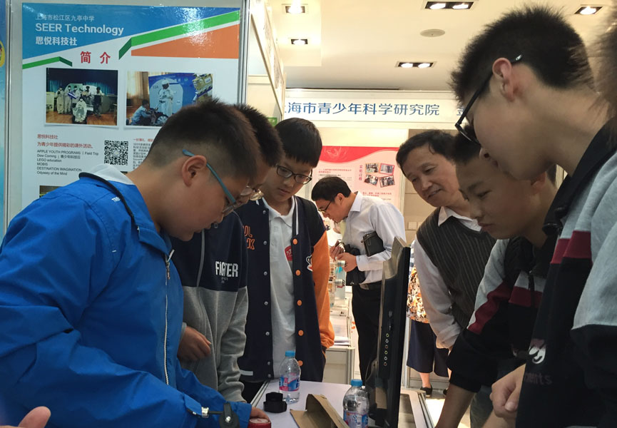 此外,今年的成果展上,市三女中的fresh greeny环保社、上海工程技术大学的OM创意联盟等20所中学及大学的64名学生向大家展示了自己的科技创新社团。这些社团作为首批市级学生科技创新社团,在制度建设、组织运行、社团规模、活动特色等方面都取得不俗的成绩,成为深受本校青少年学生喜爱且踊跃参与的校园群众性科技组织。