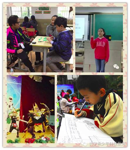 ??????? 紧接着的第三场活动,较前两次体验项目更加丰富,包括环保时装秀亲子活动、学生科普启蒙大赛、画画我们的少科站和七巧板亲子拼图大比拼,每个项目都有自己的特色和人气。废旧毛线、塑料管、蛇皮袋、废报纸齐上阵,争做环保小达人;一个科学小故事、一位自己熟悉的科学家,孩子们充满激情地表述着对科学的向往;而呈现在画纸上的孩子们眼中的少科站,一草一木、一景一物,每一笔都透露着孩子的独特思维;还有七巧板亲子赛,学生家长齐参与,比的是默契,赛的是智慧。