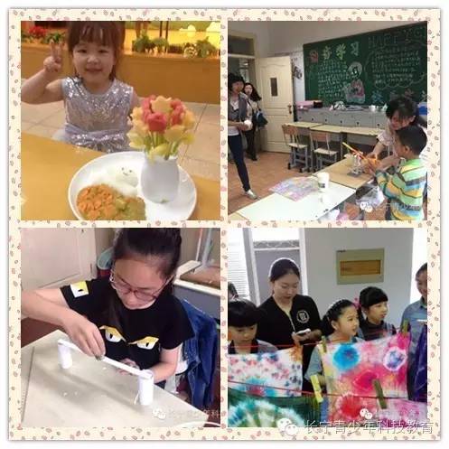 ??????? 第六场活动为“创客ING”的六一特别节目,有“染出你的色彩”——亲子扎染活动,在大手小手的共同合作下,一条条普通白手帕华丽变身为富含艺术气息的扎染作品;有科学大富翁闯关游戏,10组生动有趣的游戏,10场科学素养的挑战寓教于乐,让大小朋友们大开眼界;有纸桥承重,用身边简单的材料,展现突破天际的想象力;更有“幸福家庭,健康厨神”——《回家吃饭》节目海选活动,科学饮食、健康一家,色香味俱全的菜肴中也蕴藏着不少科学知识。