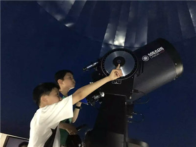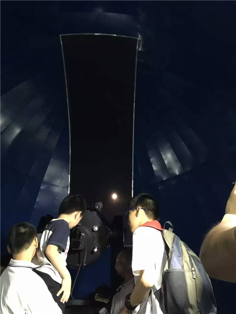 活动当晚,三个天文社的成员们走进了天象厅,观看了仿佛身临其境于浩瀚宇宙的球幕电影,领略了宇宙无垠的魅力。在天文台上,打开的穹顶能一眼望见明月高空挂,想要看得更加仔细些,还能够通过天文望远镜探个究竟。直到晚上八点,少科站的天文台还亮着灯,热衷天文的孩子们还在漫游星空,寻找宇宙的奥秘。