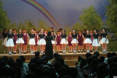 终于,在韩国主持人的报幕声中,轮到孩子们上场了。台下热烈的掌声过后一片寂静,当孩子们唱出《阿里郎》的旋律时,台下的韩国小观众也不出声地动起了嘴,看来是被孩子们的歌声带进了美妙的音乐天地。一曲结束,台下爆发出经久不息的掌声。接着朱心妍小朋友手拿小提琴缓缓走上舞台,与陈洁老师合作一曲,她举手投足间的淡定,舞台上冷静而流畅地表现,令人钦佩这个小演员深厚的艺术修养。