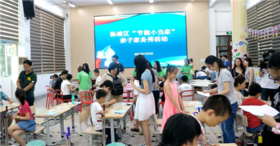 7月9日,杨浦少科站三号楼底楼大厅人头攒动,阵势浩大,暑假才刚刚开始,能干的“小当家”们和他们的爸爸妈妈、爷爷奶奶、外公外婆一起来到了杨浦少科站参加2016年杨浦区“节能小当家”亲子家务秀活动。暑假中,全区近千个家庭参与到了节能当家的行动中,他们之中通过学校推荐及微信个人报名的108个家庭汇聚在了一起,展开了现场节能技巧和家务技能的大比拼,一起比比谁算费用最快,秀秀谁的家务做得最好。