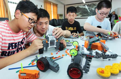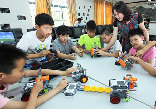 在智能机器人制作项目上,以前对于我区学生来说比较薄弱。为了激发学生的智能机器人制作兴趣,尽快提高制作能力,融入并积极参加智能机器人项目的比赛,上学期开学初,奉贤区青少年活动中心成立了智能机器人实验室,并在基层学校招了二十多名中小学生,由青少年活动中心出资购买相关机器人套材,邀请相关的专业人士每周一次对学生进行培训指导,希望经过一段时间的培训后学生有能力参加普及型智能机器人项目比赛,并逐步转向参加专业型比赛。