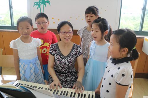 在教学中,练习弹奏每一首曲目时,王老师先带着学员们认谱唱谱,再指导学员分手弹唱,最后学员两手配合完成整首曲目的演奏。平时,王老师还开展学员合作教学,培养学员团队合作能力。丰富的教学形式与教学内容,规范的教学方法,得到了学员与家长的认可。