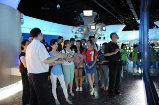 上午,学员们在导览员的指引下参观了表现生物多样性的“生物万象”、倡导人与自然和谐统一、同生共荣的“地球家园”、表现信息技术引领社会巨大变革的“信息时代”和体验人工智能应用技术飞速发展的“机器人世界”、揭示人类破解物质和生命之谜的“探索之光”、探索人体奥秘、传播健康理念的“人与健康”和展现人类实现飞天梦想足迹的“宇航天地”。以“自然?人?科技”为主题的各展区以现