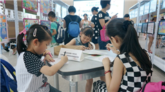 本次书市活动内容丰富多彩、精彩纷呈。深入浅出的科普讲座、科普读物互动分享、看科幻画创作自己的原创微故事、自己动手给书本换新衣等等精彩的活动版块,让小朋友们欢乐一夏!下面我们通过"科普科幻笔友会"、"上海科教出版社展示互动"、"少科站科普读物作者老师与学生互动体验签名赠书"、"科幻画里找故事"、"书的周边动手做"和"旧书交换乐分享"六个板块看看活动中孩子们欢乐的身影吧!