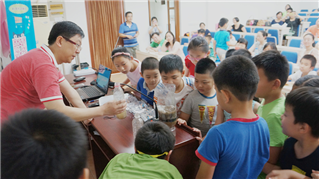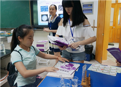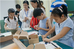 这次活动还有一个项目吸引了小朋友们的注意力!原来杨浦少科站作者老师们将自己精心编写的《天文探秘》《数码动漫》《物质的魔变》《模型设计与制作》《玩乐高学机械》等科普读物带到了活动现场,从里面精选了有趣的互动体验项目,小朋友们在现场与编者老师们互动天文、物理、模型等有趣的小实验小制作。
